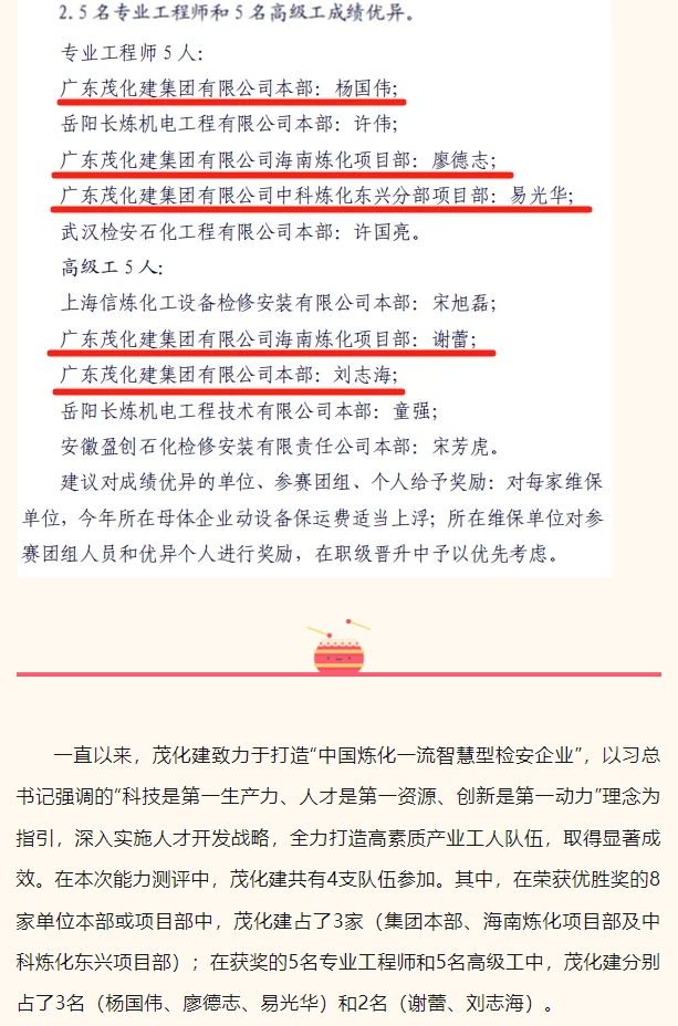 祝賀!茂化建在中石化煉化企業(yè)維保隊伍動設(shè)備實操能力測評中成績優(yōu)異,名列前茅