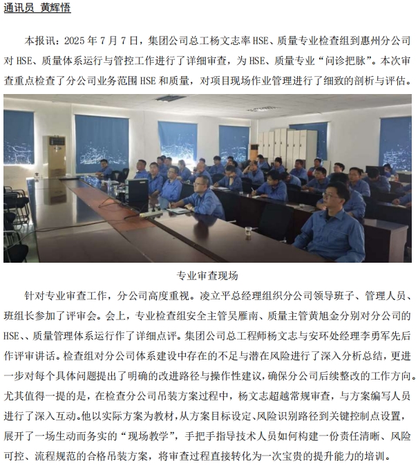總部專家為惠州分公司體系管理運行“問診把脈”