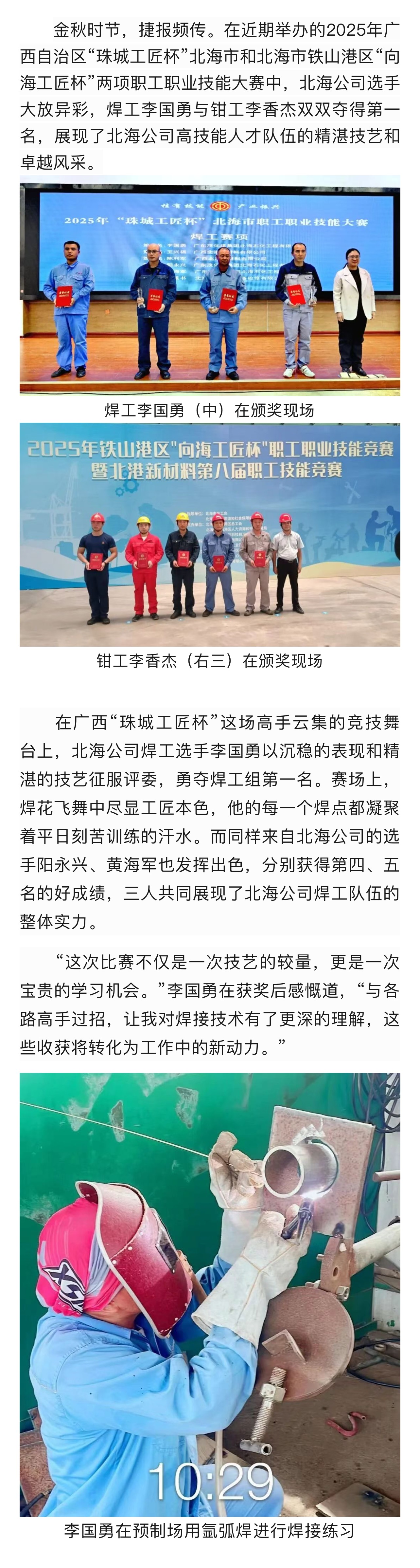 北海公司技能賽場捷報頻傳,勇奪焊工、鉗工雙項桂冠