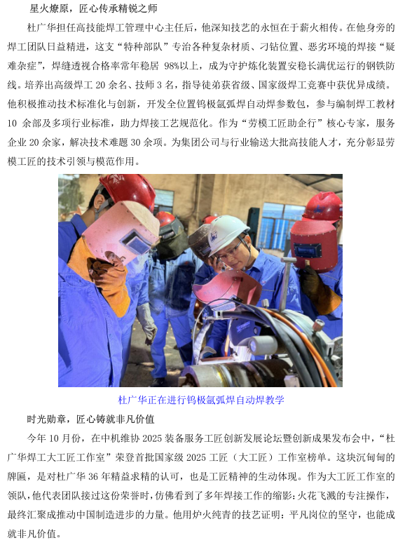 杜廣華被評(píng)為焊工首席技師 晉升國(guó)家“新八級(jí)工”制度中技能等級(jí)頂端