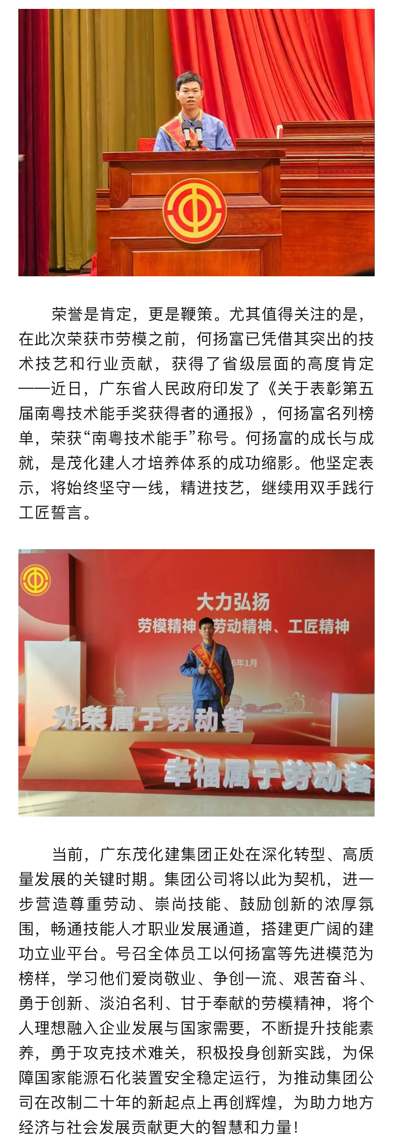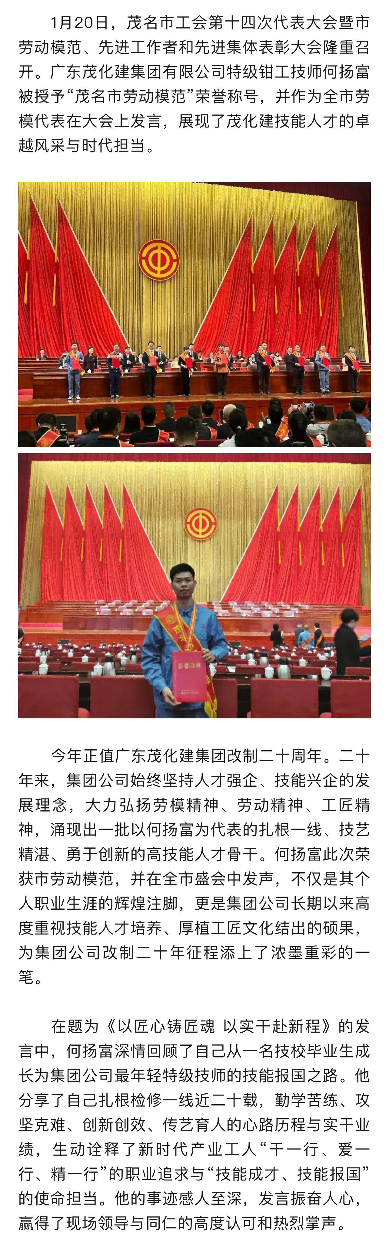 喜報(bào)!廣東茂化建集團(tuán)特級技師何揚(yáng)富榮獲“茂名市勞動(dòng)模范”榮譽(yù)稱號(hào)